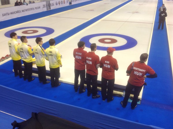 2015. március 29. vasárnap Megkezdte szereplését a magyar férfi curling csapat. Az első ellenfél Dél-Korea csapata, akik eddig még nem szerepeltek nagy nemzetközi versenyeken. Az előzetes felmérések hasonló játékerőt képviselnek, mint a magyarok. A koreaiak kezdték a játékot, szoros küzdelem alakult ki, a magyarok 2-0-ás vezetésre tettek szert, de a koreaiak 4-2-re fordítottak. A következő játékot mi nyertük 2-0-ra, így ismét döntetlenre alakult a mérkőzés állása: 4-4. Az ezt követő játékot 1-0-ra nyertük meg, így az állás 5-4-re módosult. Az ezt követő játékot a koreaiak 4-0-ra nyerték meg, így elhúztak 8-5-re. A magyar csapat nem adta fel, sikerült kiegyenlítenie, 8-8-ra alakult az eredmény az utolsó játék előtt. Az utolsó játék A koreaiaknak sikerült jobban, így megnyerték a mérkőzést. Végeredmény: Magyarország – Dél-Korea 8:9 Az utolsó játék végén Dél-Korea örülhetett, megnyertek a mérkőzést.