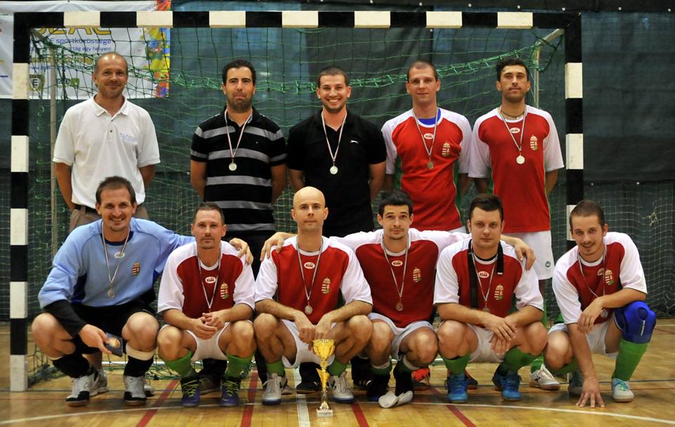 Első ízben rendeztek a férfiak számára is tornát az ELTE kupán, ahol a hallássérültek válogatottja is részt vett. Ez a csapat azonos az MHSSZ válogatottjával, akik novemberben részt fognak venni az EDSO által szervezett Európa-bajnokságon. Négy csapat vett részt: Hallássérültek Válogatottja, BME FC, Dunakeszi Kinizsi U20, ELTE. Eredmények: BME FC – Dunakesz Kinizsi U20 8-0 ELTE – Hallássérültek Válogatottja 7-3 Az ELTE ezen a mérkőzésen végig jobb volt, 5 góllal is vezettek, de a siketek válogatottja nem adta fel, tovább küzdött és még két gólt szereztek, később kiderült, hogy ez a két gól nagyon sokat számított a végelszámolásban! BME FC – Hallássérültek Válogatottja 6-3 A torna legerősebb csapata, a BME FC fölényes győzelmet várt a Hallássérültek Válogatottja ellen, de meglepetésre nagyon jól játszottak a mieink, szorosabbá tették a meccset. ELTE – Dunakeszi Kinizsi U20 1-5 BME FC – ELTE 7-3 Hallássérültek Válogatottja – Dunakeszi Kinizsi U20 7-4 A torna utolsó mérkőzésén a mienk tudták, hogy 3 gólos győzelemre lenne szükséges a 2. hely megszerzéséhez, ennek tudatában játszottak. A vezetést gyorsan megszerezték, ezután kiegyenlített küzdelem volt, úgy látszott, hogy nincs sok esély a 2. hely megszerzéséhez. A véghajrában a hallássérültek még két gólt tudtak lőni az ellenfelüknek, úgy, hogy a legvégén a Dunakesziek még a kapusukat is lehozták, hogy gólt lőjenek, erre kaptak 2 gólt. Ez azt jelentette, hogy a hallássérültek válogatottja megszerezte a 2. helyezést! Végeredmény: 1. BME 9 pont 2. Hallássérültek Válogatottja 3 pont (13-17) 3. ELTE 3 pont (11-15) 4. Dunakeszi Kinizsi U20 3 pont (9-16) A torna legjobb kapusa megérdemelten Borna Gábor lett (képünkön) A tornáról részletesen itt lehet olvasni: IV. ELTE-BEAC Kupa Borna Gábor (balra) átveszi a torna legjobb kapusának járó díjat